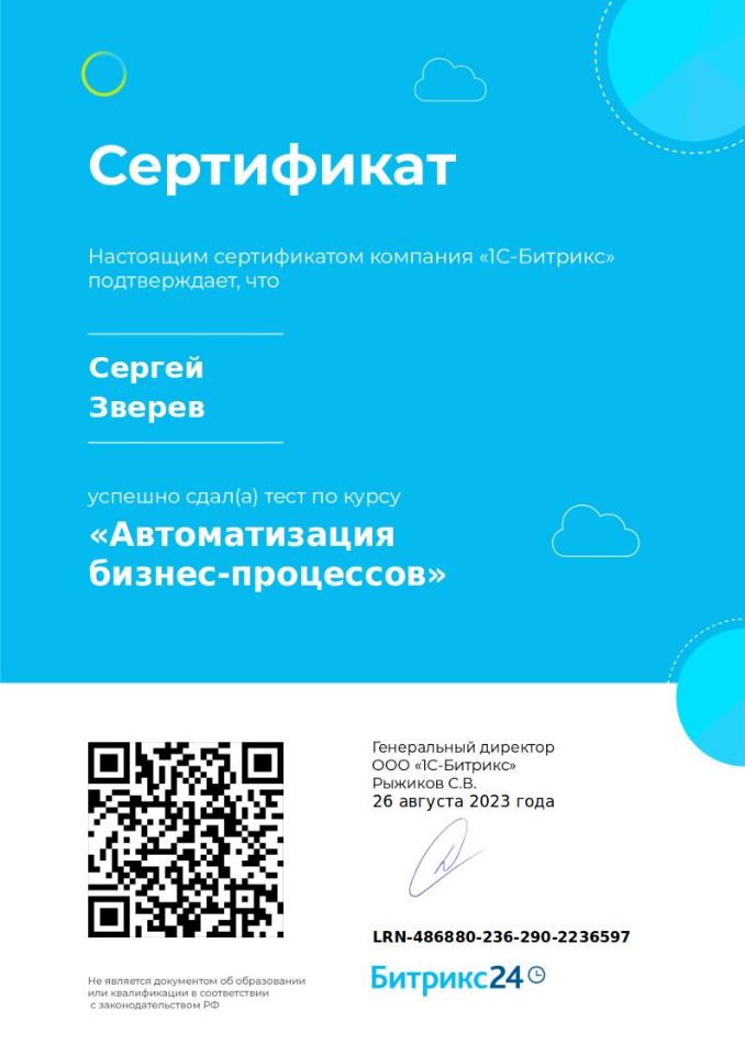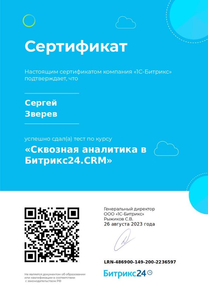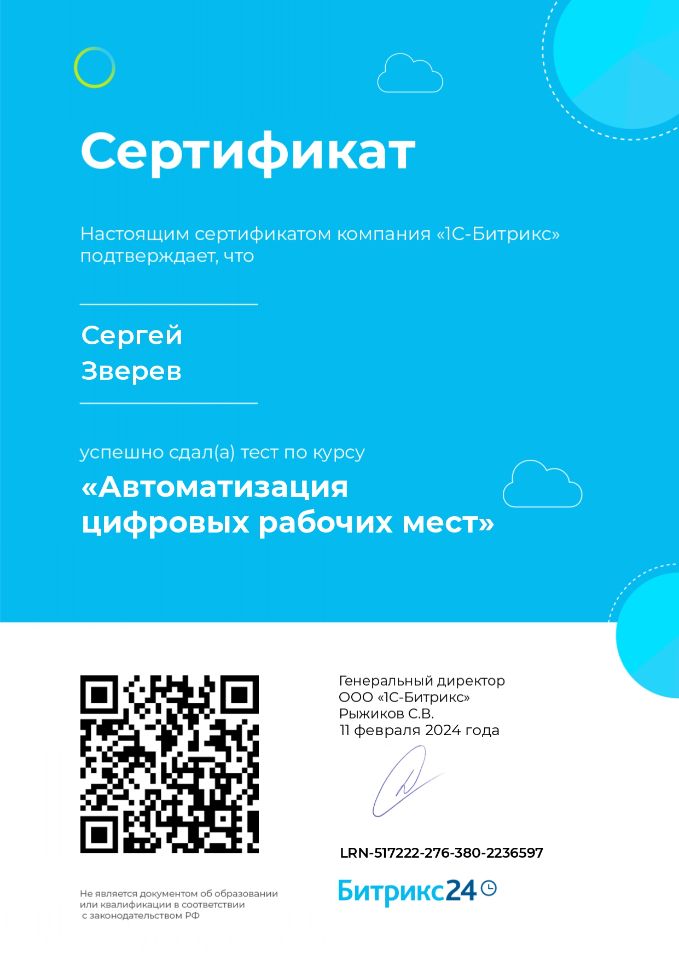 Сертифицированный специалист по коробочной Битрикс24;